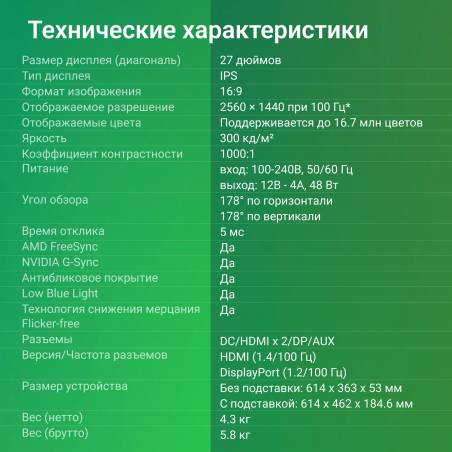 Монитор Digma 27" Progress 27P501Q черный IPS LED 16:9 HDMI M/M матовая 300cd 178гр/178гр 2560x1440 100Hz G-Sync FreeSync DP 2K