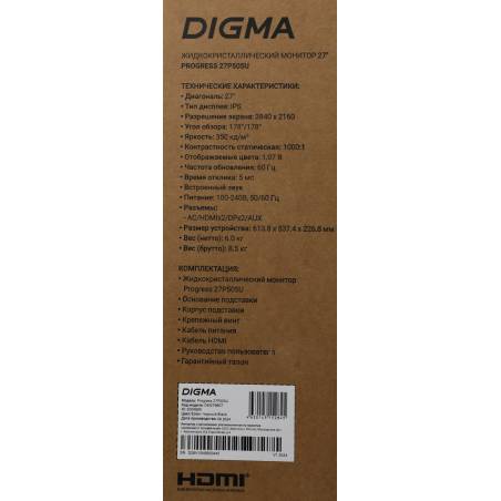 Монитор Digma 27" Progress 27P505U черный IPS LED 16:9 HDMI M/M матовая HAS Piv 350cd 178гр/178гр 3840x2160 60Hz FreeSync DP 4K