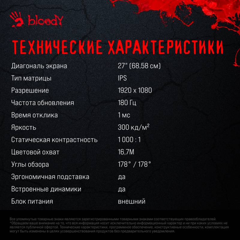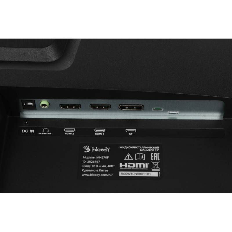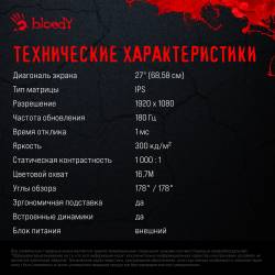 Монитор Bloody 27" MN270F черный IPS LED 1ms 16:9 HDMI M/M матовая 300cd 178гр/178гр 1920x1080 180Hz G-Sync DP FHD 4кг