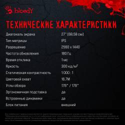 Монитор Bloody 27" MN270Q черный IPS LED 1ms 16:9 HDMI M/M матовая 300cd 178гр/178гр 2560x1440 180Hz G-Sync DP 2K 3.95кг
