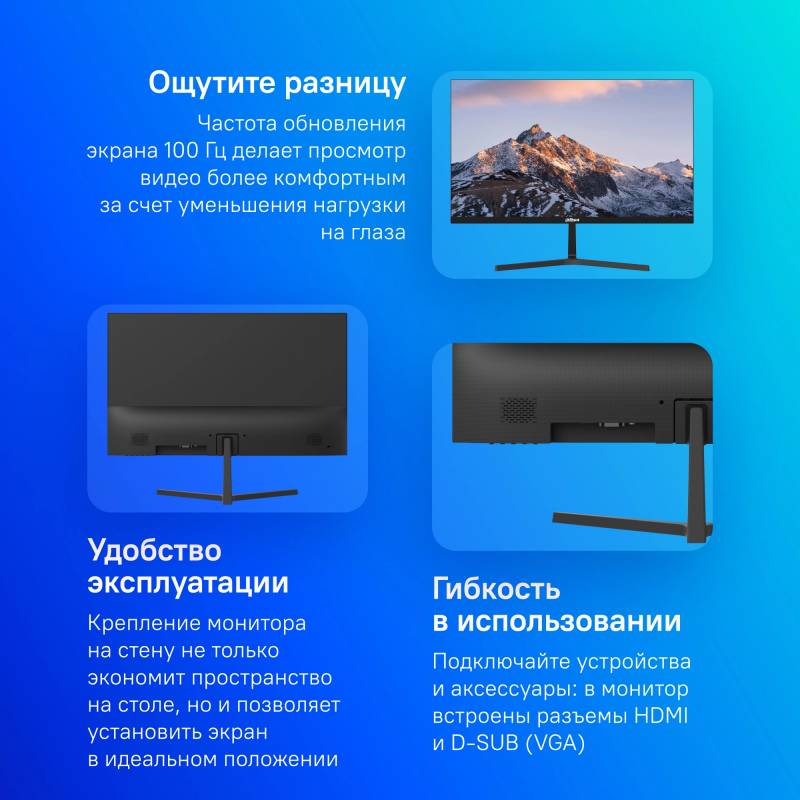 Монитор Dahua 23.8" DHI-LM24-B200S черный VA LED 5ms 16:9 HDMI M/M матовая 3000:1 250cd 178гр/178гр 1920x1080 100Hz VGA FHD 2.74