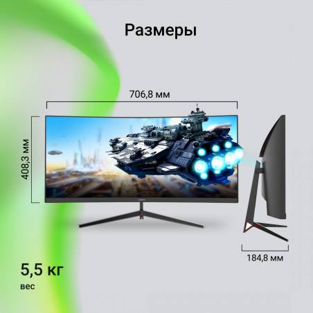 Монитор Digma 29.5" Overdrive 30A510F черный VA LED 1ms 21:9 HDMI матовая 300cd 178гр/178гр 2560x1080 200Hz DP 2K USB 4.3кг
