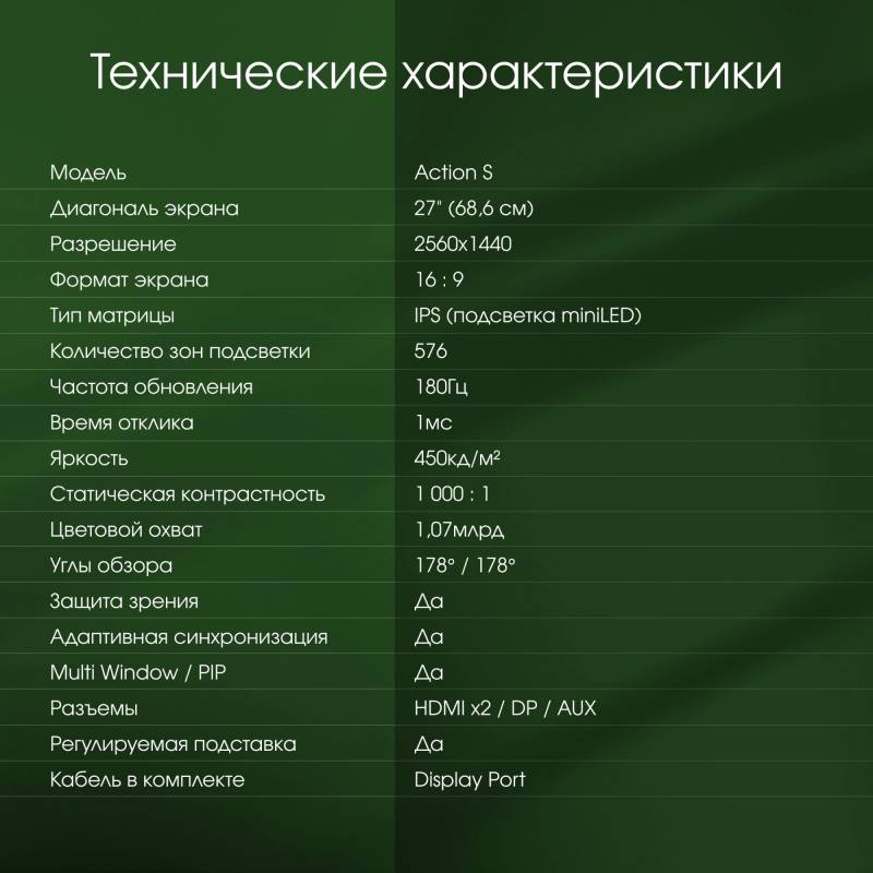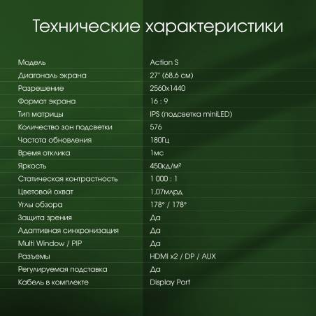 - кабель DP, инструкция пользователя, гарантийный талон