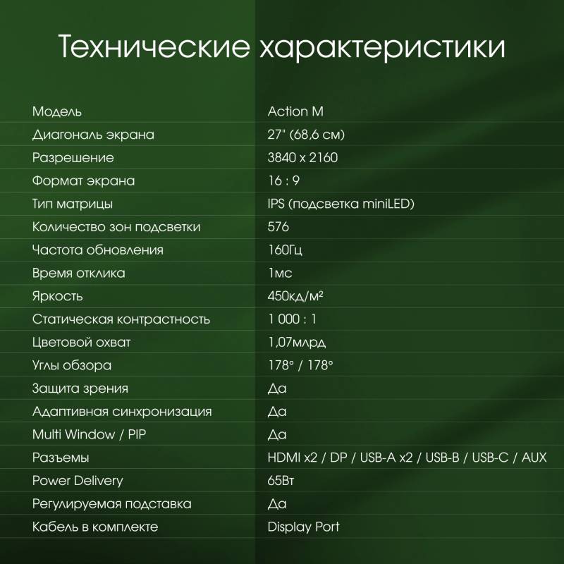 - кабель DP, инструкция пользователя, гарантийный талон