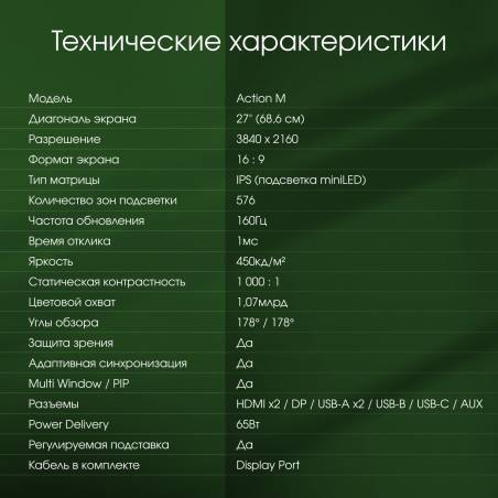 Монитор Digma Pro 27" Action M черный IPS LED 1ms 16:9 HDMI M/M матовая HAS 450cd 178гр/178гр 3840x2160 160Hz DP 4K USB 6кг