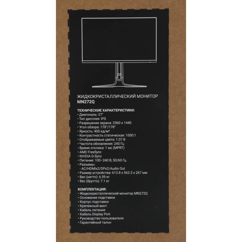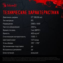 Монитор Bloody 27" MN272Q светло-серый IPS LED 1ms 16:9 HDMI M/M матовая HAS 400cd 178гр/178гр 2560x1440 240Hz G-Sync FreeSync D