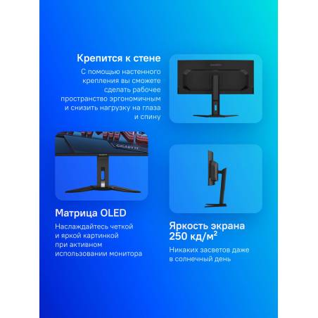 Монитор Gigabyte 34" MO34WQC2 черный OLED LED 21:9 HDMI M/M матовая HAS Piv 250cd 178гр/178гр 3440x1440 240Hz DP WQ USB 9.86кг