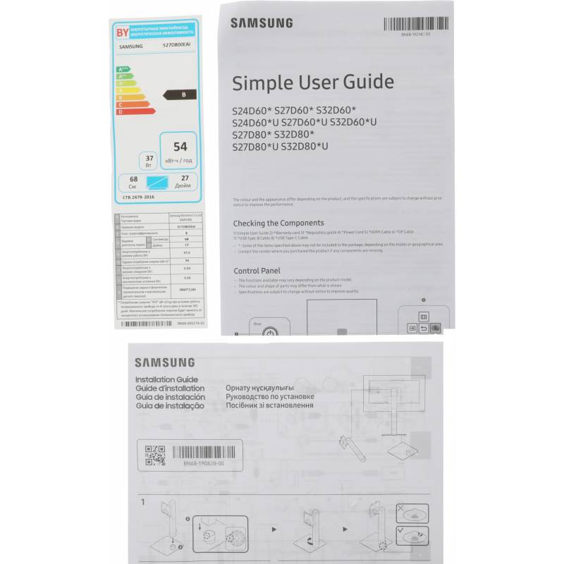 Монитор Samsung 27" ViewFinity S8 S27D800EAIXCI черный IPS LED 5ms 16:9 HDMI матовая HAS Piv 1000:1 350cd 178гр/178гр 3840x2160