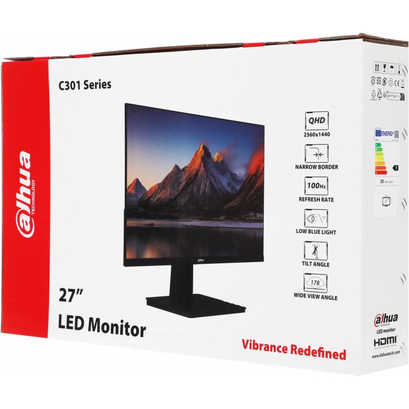 Монитор Dahua 27" DHI-LM27-C301B черный IPS LED 5ms 16:9 HDMI матовая 1200:1 300cd 178гр/178гр 2560x1440 100Hz DP 2K 4.8кг