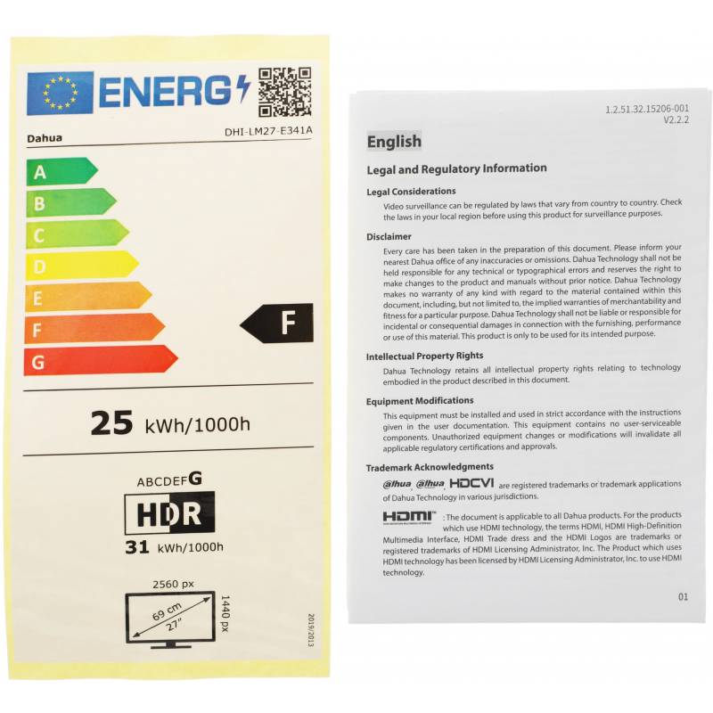 Монитор Dahua 27" DHI-LM27-E341A черный IPS LED 16:9 HDMI матовая 1000:1 300cd 178гр/178гр 2560x1440 240Hz DP 2K 4.97кг