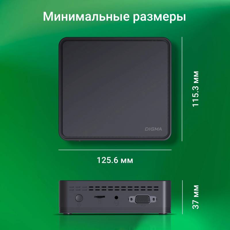 Неттоп Digma Mini Office Cel N4020 (1.1) 4Gb SSD128Gb UHDG 600 CR Windows 11 Pro GbitEth WiFi BT 36W черный (DPCN-4BXW01)