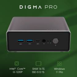 Неттоп Digma Pro Minimax U1 i3 1220P (1.5) 16Gb SSD512Gb UHDG Windows 11 Pro GbitEth WiFi BT 60W темно-серый/черный (DPP3-ADXW01