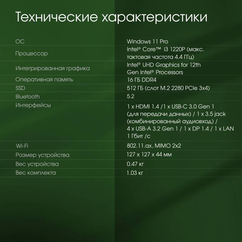 - Intel Core i3 1220P 1.5ГГц
