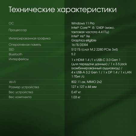 Неттоп Digma Pro Minimax U1 i5 1240P (1.7) 16Gb SSD512Gb Iris Xe Windows 11 Pro GbitEth WiFi BT 60W темно-серый/черный (DPP5-ADX