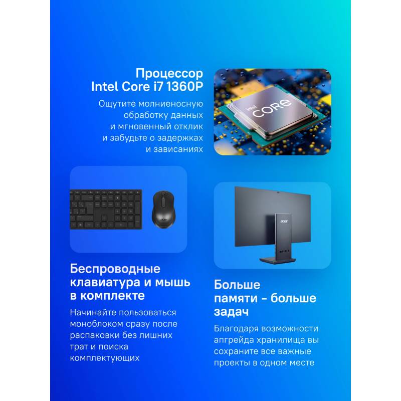 Моноблок Acer Aspire S32-1856 31.5" WQHD i7 1360P (2.2) 16Gb SSD1Tb Iris Xe CR Eshell GbitEth WiFi BT 180W клавиатура мышь Cam с