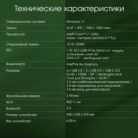 Моноблок Digma Pro Unity 23.8" Full HD i7 1255U (1.7) 16Gb SSD1Tb Iris Xe Windows 11 Pro GbitEth WiFi BT 90W клавиатура мышь Cam