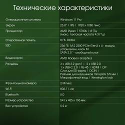 Моноблок Digma Pro Vision 23.8" Full HD Ryzen 7 5700U (1.8) 8Gb SSD256Gb RGr CR Windows 11 Pro Eth WiFi BT 90W клавиатура мышь C