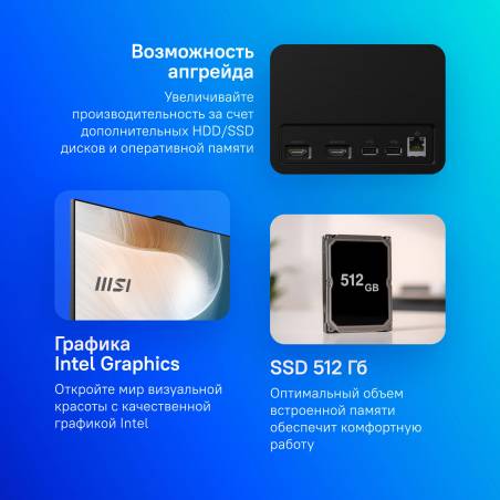 - Технология Instant Display превращает моноблок серии Modern AM242 в режим монитора без загрузки системы.Конструкция MSI Storage Rapid Upgrade Design позволяет быстро обновлять или обслуживать 2,5" системы хранения данных.