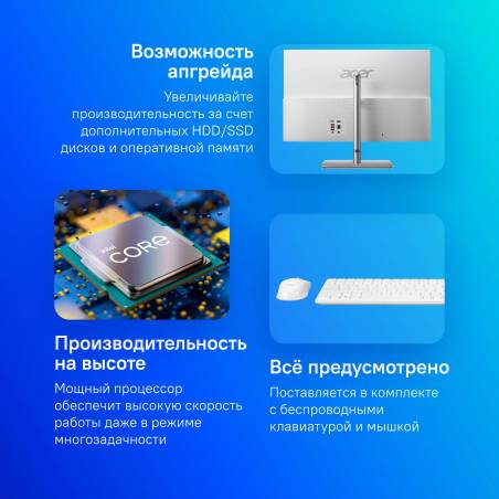 Моноблок Acer Aspire C27-195ES 27" Full HD Core Ultra 5 125U (1.3) 16Gb SSD512Gb Graphics CR Eshell GbitEth WiFi BT 65W клавиату