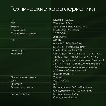 Моноблок Digma Pro Unity 23.8" Full HD i3 12100 (3.3) 16Gb SSD512Gb UHDG CR Windows 11 Pro GbitEth WiFi BT 90W клавиатура мышь C