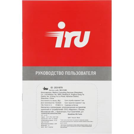 Моноблок IRU Tactio 23.8" Full HD i5 12450H (2) 16Gb SSD512Gb без ОС GbitEth WiFi BT 90W Cam черный 1920x1080