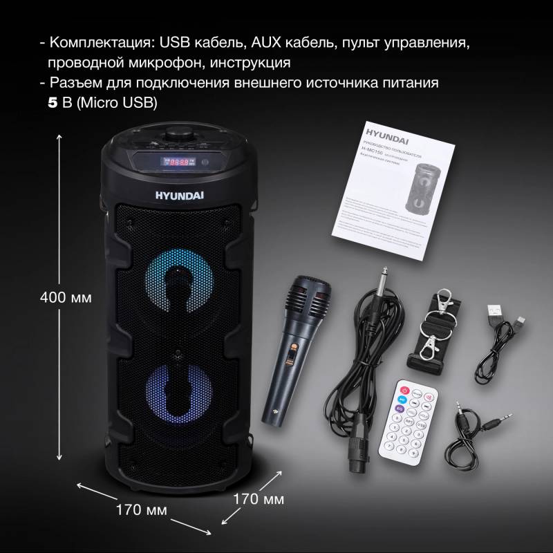 Минисистема Hyundai H-MC160 черный 50Вт FM USB BT SD/MMC