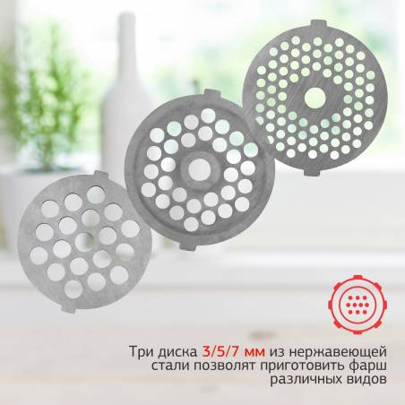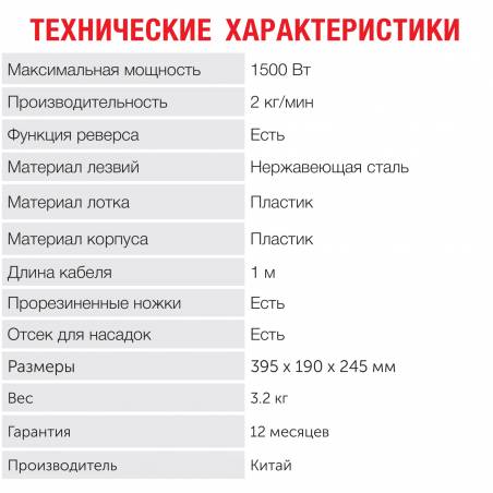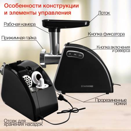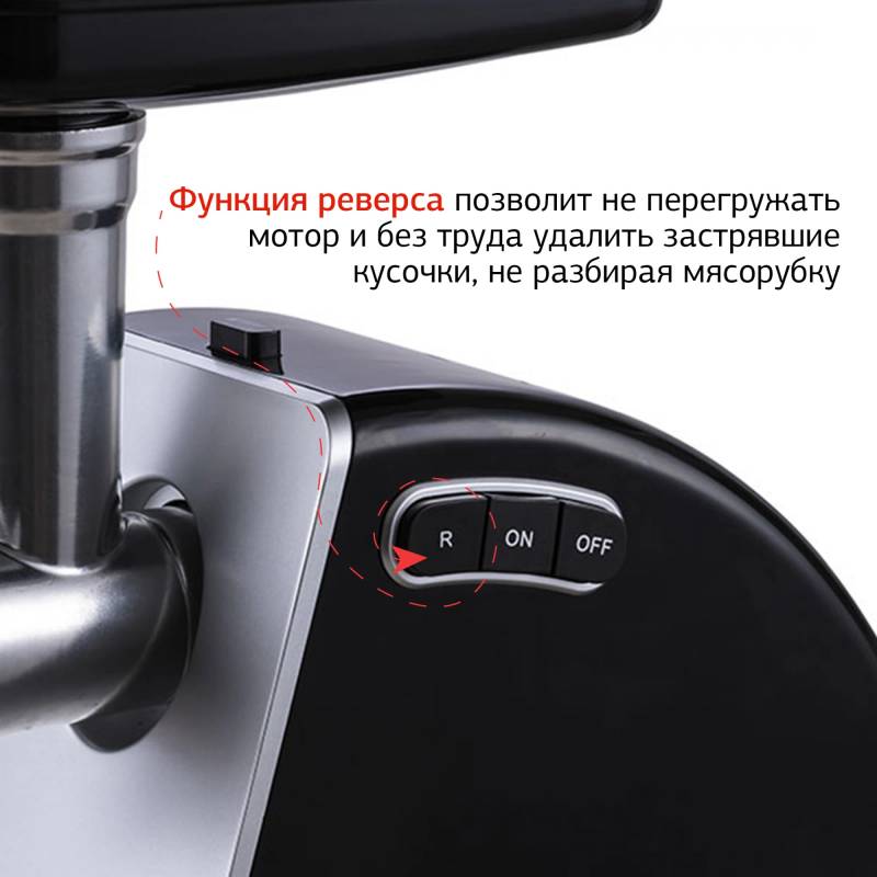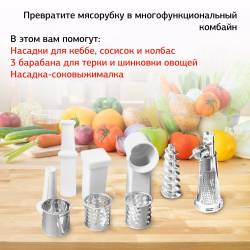 - Металлическое соединение шнека с редуктором обеспечивает повышенный ресурс прибора и способствует долговечности мясорубки
