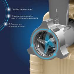- Улучшенная конструкция шинковки для овощей, заточенные терки для более эффективной переработки продуктов