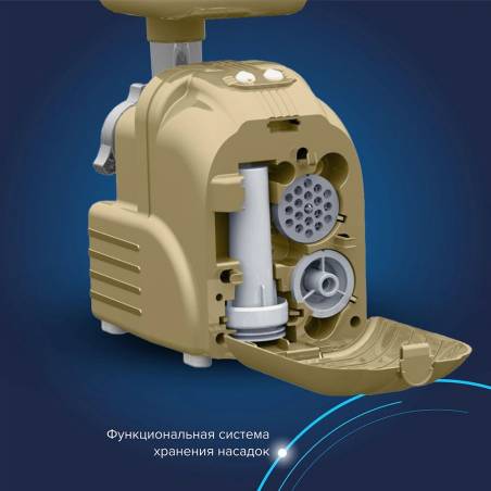 - Приставка-овощерезка с 3 сменными барабанами, шнековая соковыжималка