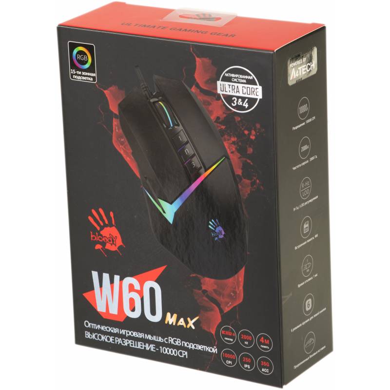 Мышь A4Tech Bloody W60 Max черный оптическая 10000dpi USB 7but (W60 MAX STONE BLACK)