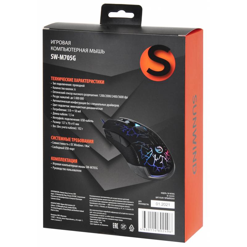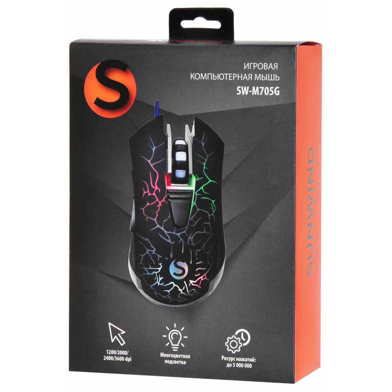 Мышь SunWind SW-M705G черный оптическая 3600dpi USB для ноутбука 6but (1422391)