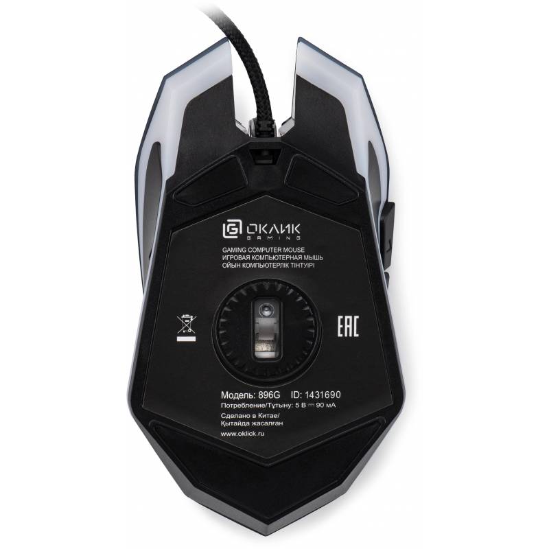 Мышь Оклик 896G черный оптическая 12800dpi USB для ноутбука 5but (1431690)