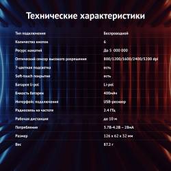 - Беспроводная компьютерная мышь. Встроенный Li-Ion аккумулятор на 400mAh,тефлоновые ножки для лучшего скольжения, многоцветная подсветка (с возможностью отключения), настройка оптимального разрешения. Специальное ПО расширяющее функциональные возможности м
