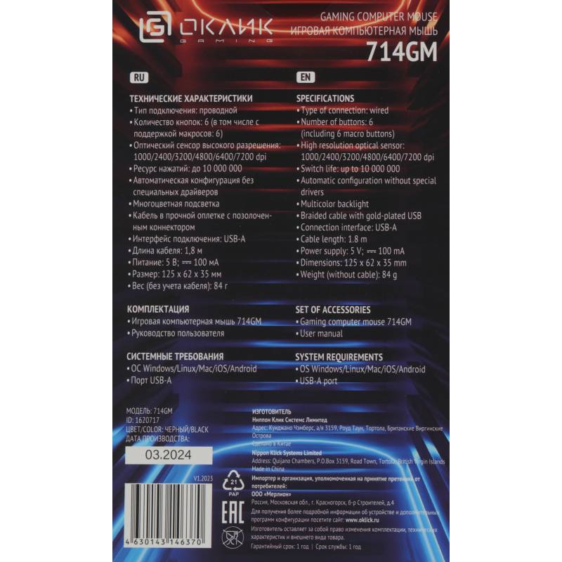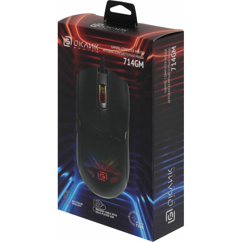 Мышь Оклик 714GM черный оптическая 7200dpi USB 6but (1620717)