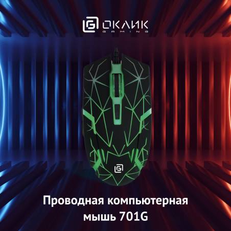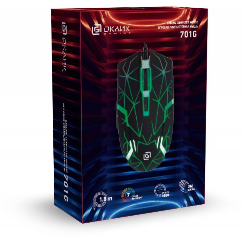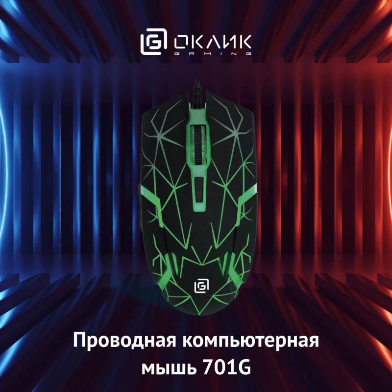 Мышь Оклик 701G черный оптическая 3600dpi USB для ноутбука 6but (1884623)