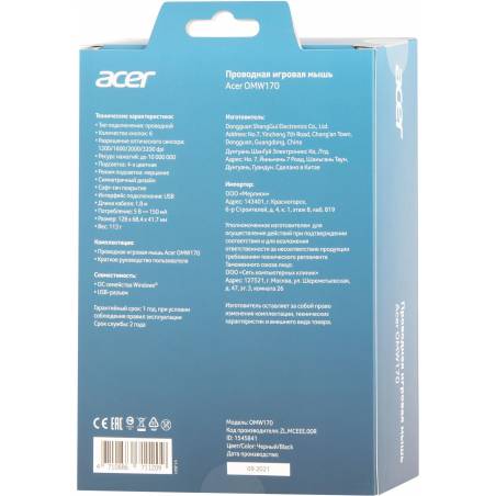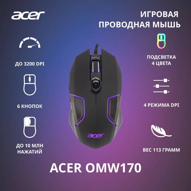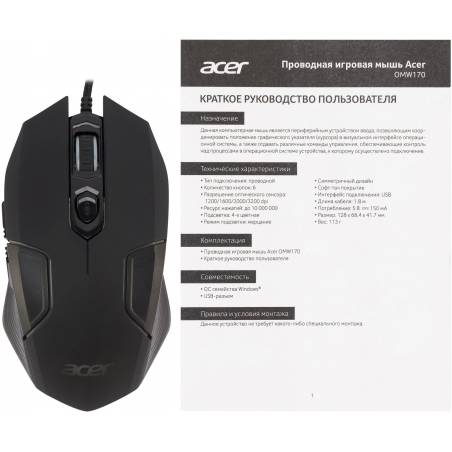 Мышь Acer OMW170 черный оптическая 3200dpi USB 6but (ZL.MCEEE.00R)
