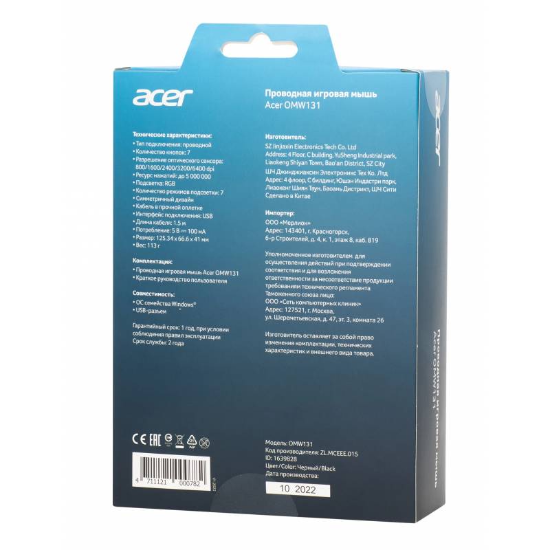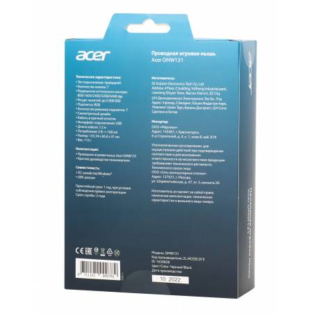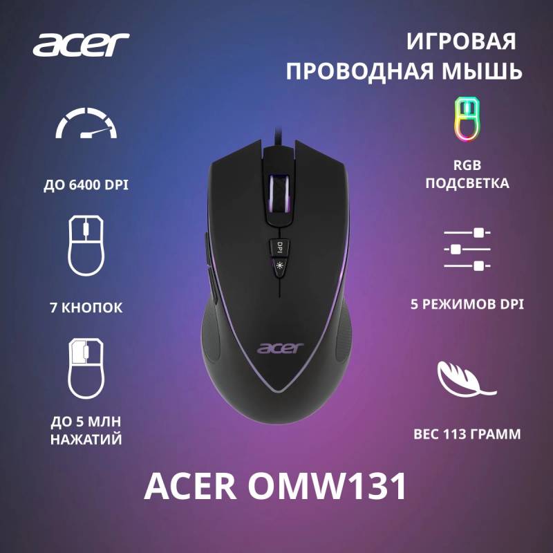 Мышь Acer OMW131 черный оптическая 6400dpi USB 7but (ZL.MCEEE.015)