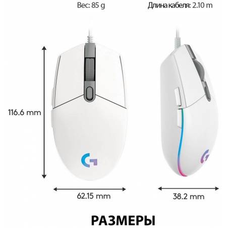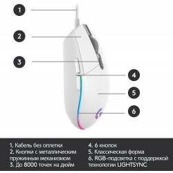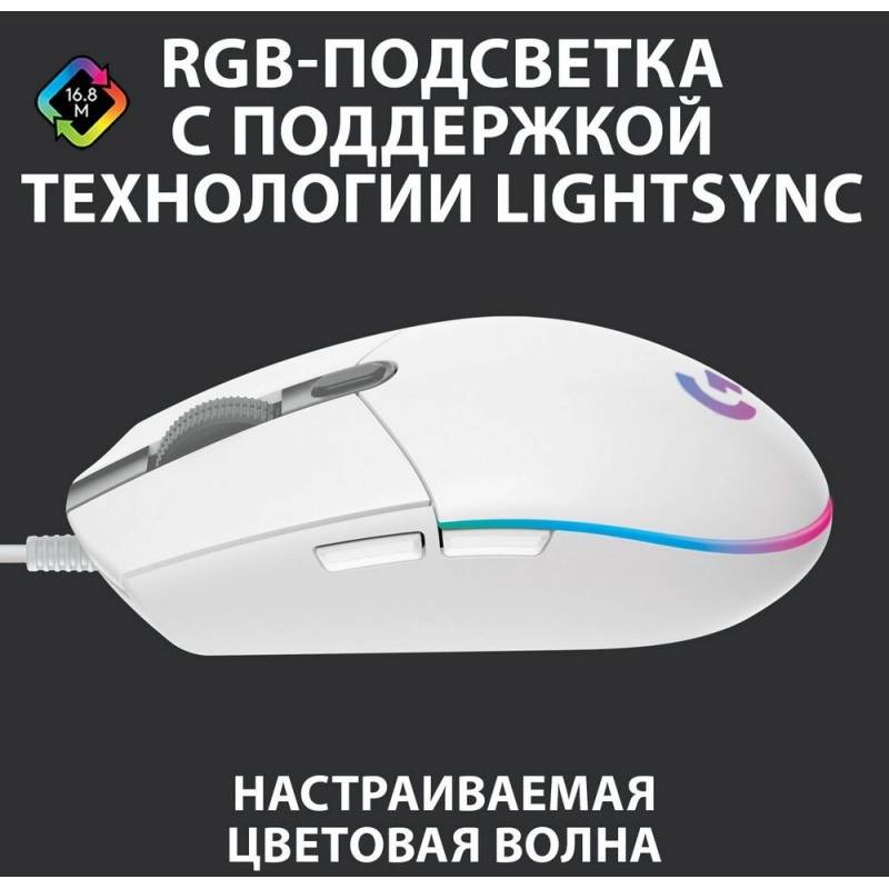 Мышь Logitech G102 LightSync белый оптическая 8000dpi USB 6but (910-005809)