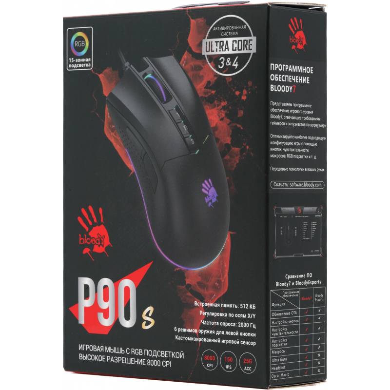 Мышь A4Tech Bloody P90s черный оптическая 8000dpi USB 7but (P90S STONE BLACK)