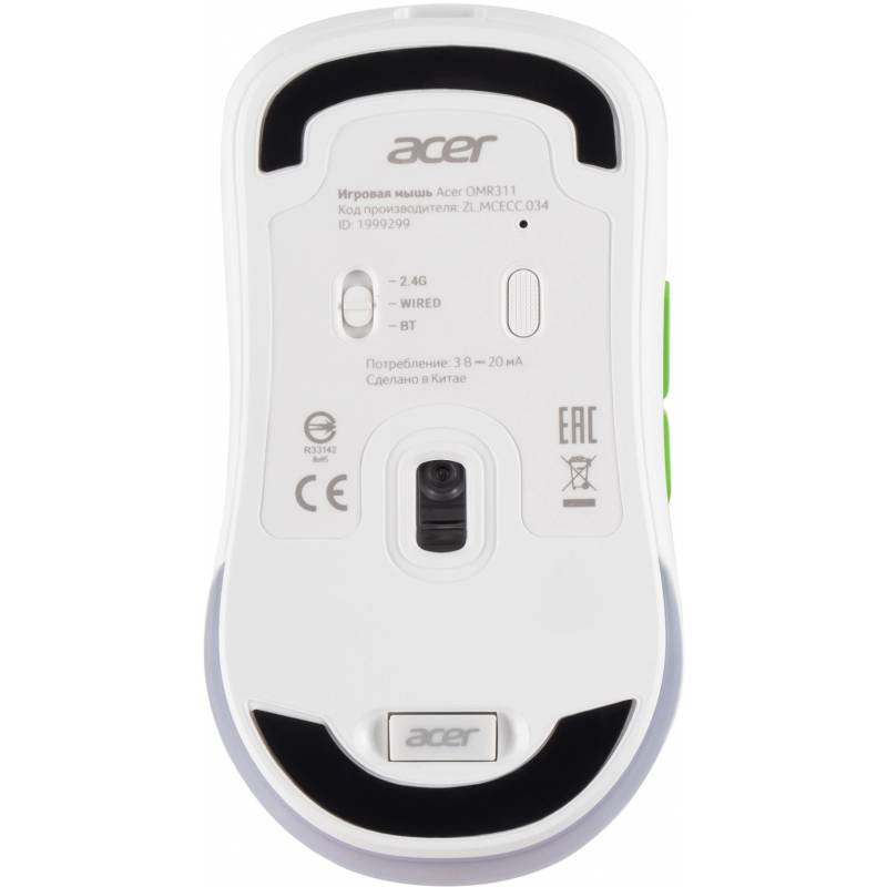 Мышь Acer OMR311 белый оптическая 2400dpi беспров. BT/Radio USB 7but (ZL.MCECC.034)