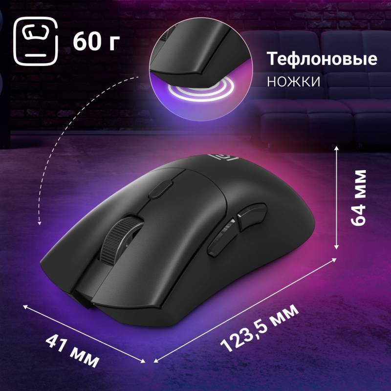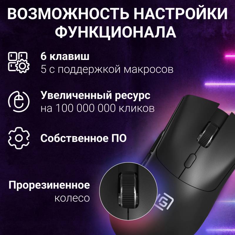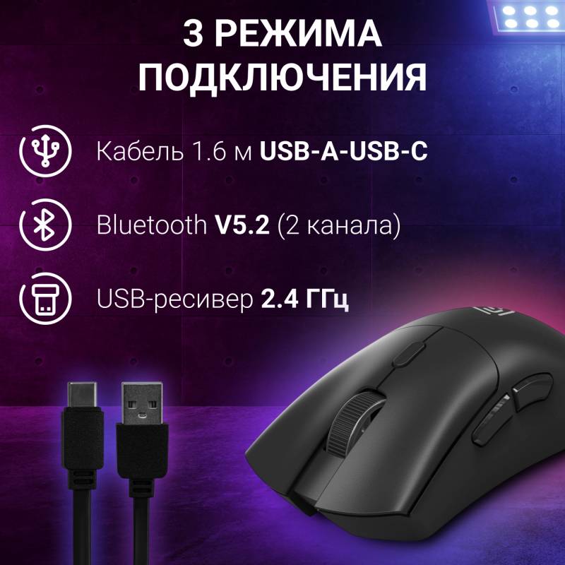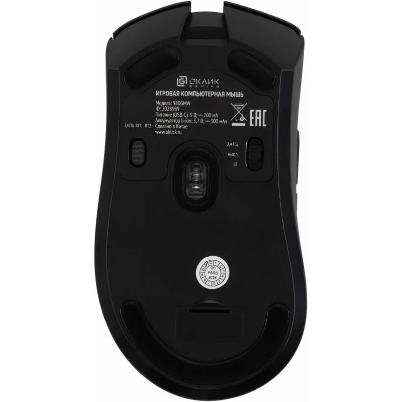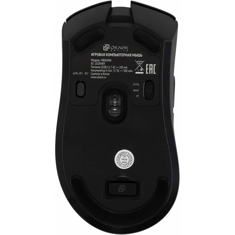 Мышь Оклик 980GMW черный оптическая 26000dpi беспров. BT/Radio USB для ноутбука 6but