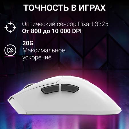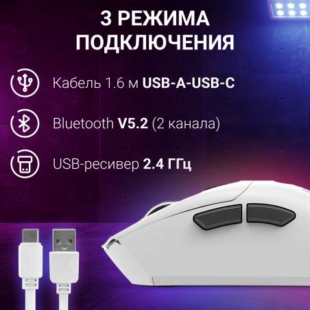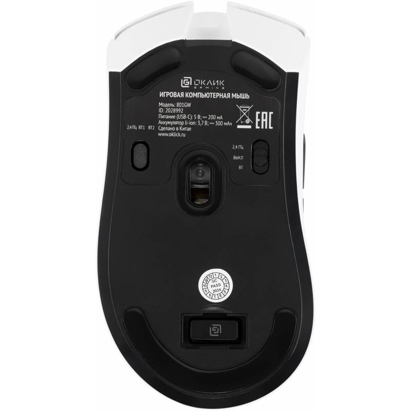 Мышь Оклик 801GW белый/черный оптическая 10000dpi беспров. BT/Radio USB 6but