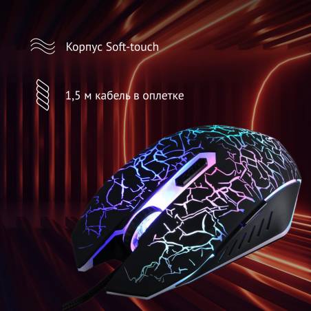 - Игровая компьютерная мышь, 6 кнопок, RGB подсветка, ресурс кликов 5 млн, нескользящая в руке поверхность soft-touch, тефлоновые ножки, разрешение датчика оптимизированное для современных мониторов - до 3600 dpi, кабель в прочной оплетке. Специальное ПО р