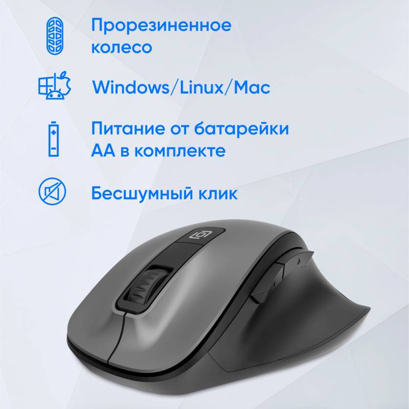 - Функциональная офисная мышь с бесшумным кликом, прорезиненным колесиком прокрутки и беспроводным подключением