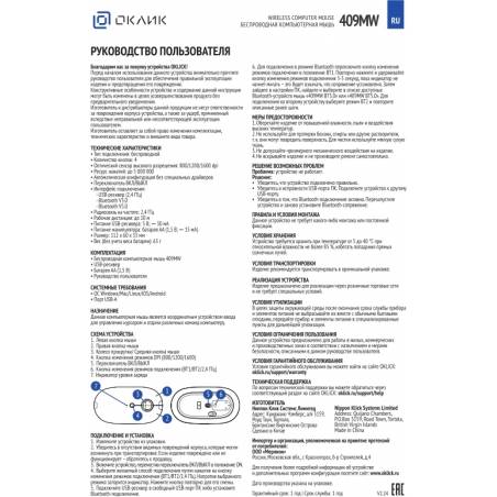 Мышь Оклик 409MW графитовый оптическая 1600dpi silent беспров. BT/Radio USB для ноутбука 4but (2007545)