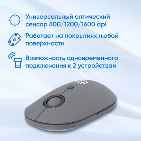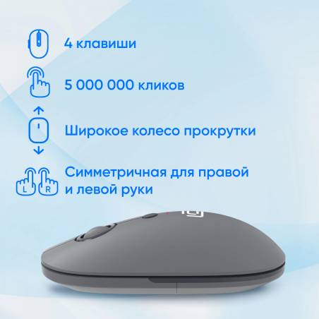 - Поддержка трех устройств - 2.4G + BT + BT, slim дизайн, бесшумные клавиши, широкое резиновое колесо, кнопка вкл/выкл на нижней поверхности