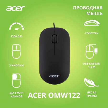 Мышь Acer OMW122 черный оптическая 1200dpi USB 3but (ZL.MCEEE.00V)