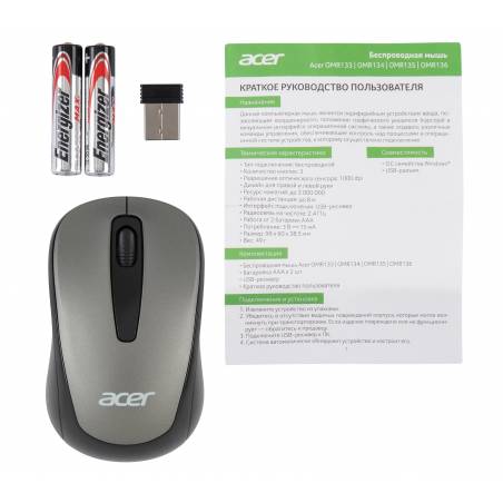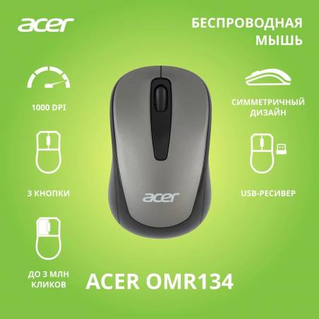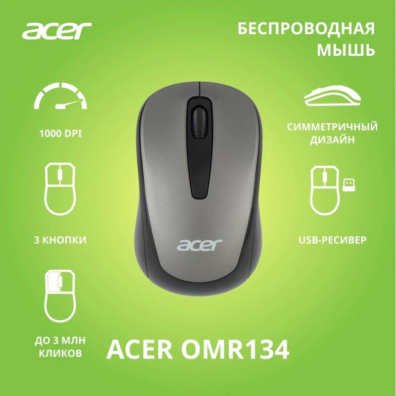 Мышь Acer OMR134 серый оптическая 1000dpi беспров. USB для ноутбука 3but (ZL.MCEEE.01H)