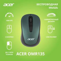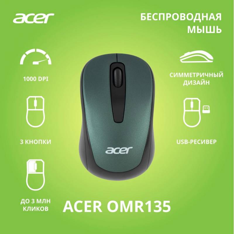 Мышь Acer OMR135 зеленый оптическая 1000dpi беспров. USB для ноутбука 3but (ZL.MCEEE.01I)