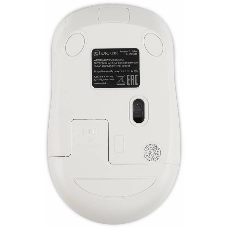 Мышь Оклик 310MW белый/синий оптическая 3200dpi беспров. USB для ноутбука 4but (1869094)